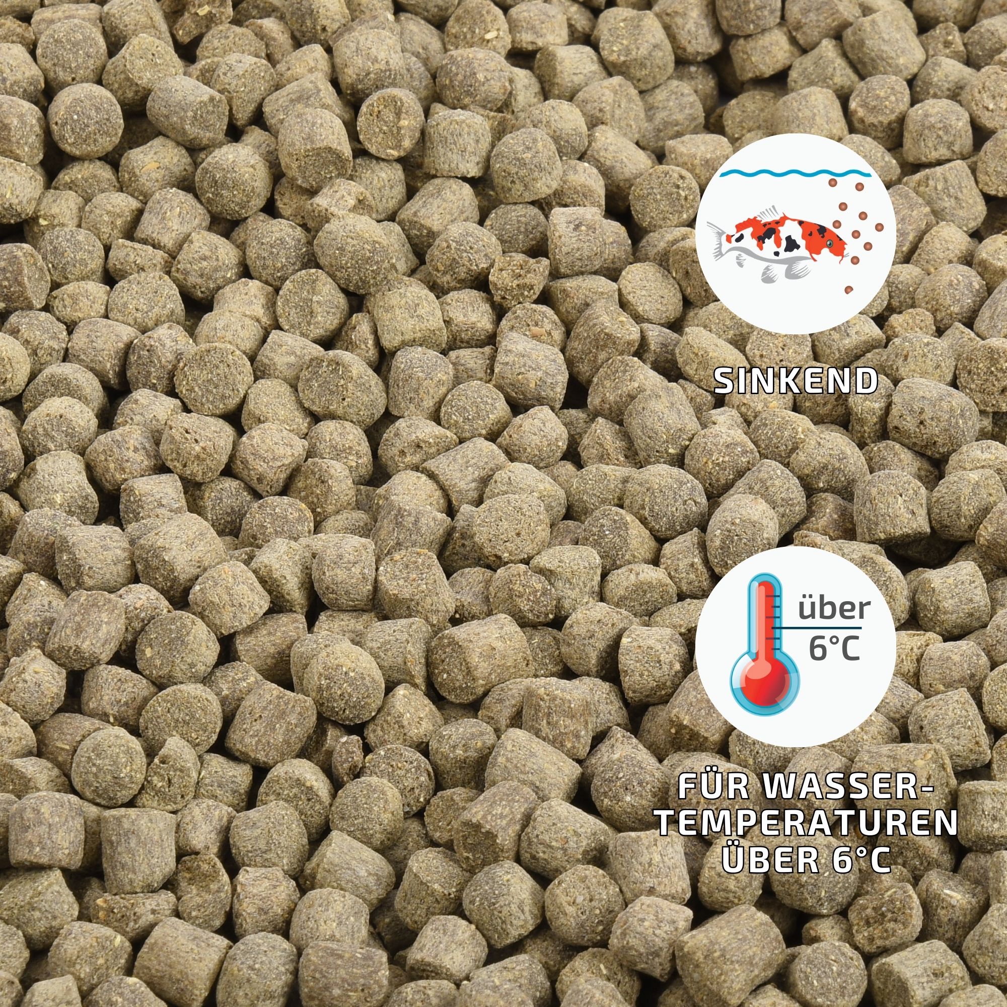 Wenn Sie dieses Futter mit Energie Plus auffetten, dann können Sie es bis zu einer Wassertemperatur von 6°C füttern.