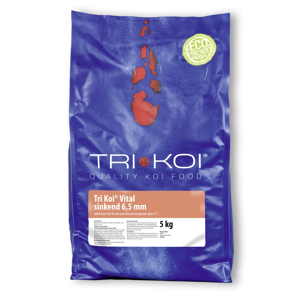Tri Koi® Vital ist ein sinkendes Futter und ist besonders für Temperaturen zwischen 6° und 10° C geeignet. Somit ist dieses Futter ideal für die kalte Jahreszeit geeignet. Zusätzlich eignet sich dieses Futter auch für alle Tiere, die sich gerne im schwebenden oder gründelnden Bereich bewegen. Ideales Koifutter auch für ältere Koi, Innenhälterungen, bei Filterproblemen oder zur Einmischung von Arzneimittel.