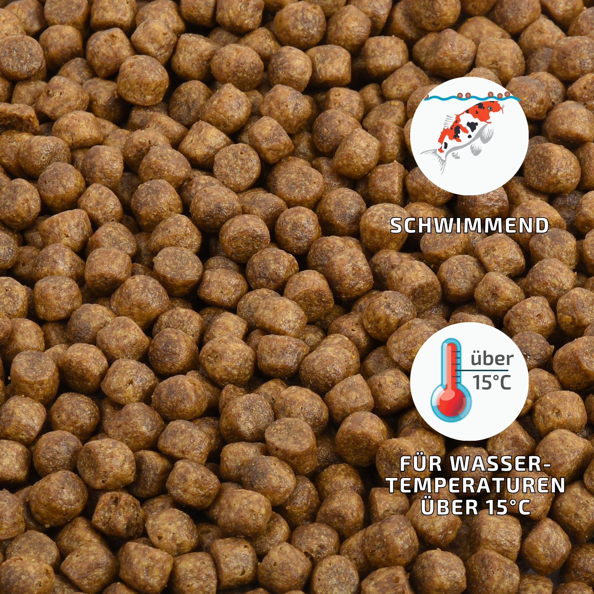 Füttern Sie Ihre Koi in Abhängigkeit von der Wassertemperatur 1-3 x täglich. Als Alleinfuttermittel für Koi Karpfen, zwischen 0,2% und 1,5% des Fischgewichtes, je nach Wassertemperatur und Jahreszeit.