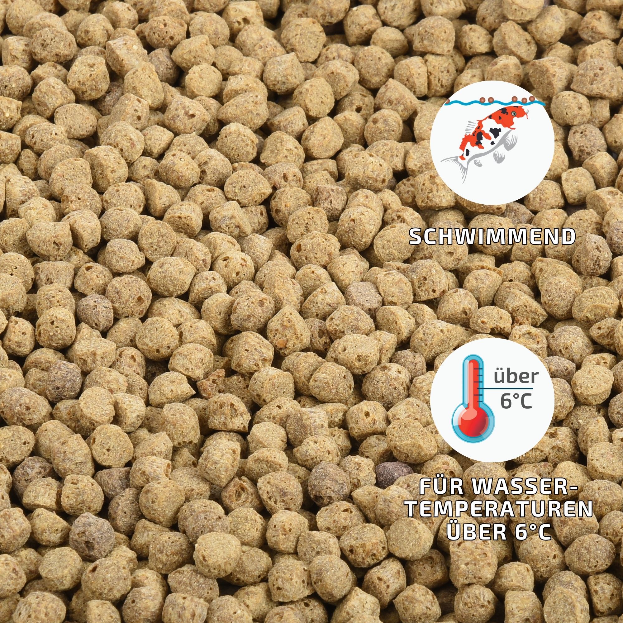 Wenn Sie dieses Futter mit Energie Plus auffetten, dann können Sie es bis zu einer Wassertemperatur von 6°C füttern.