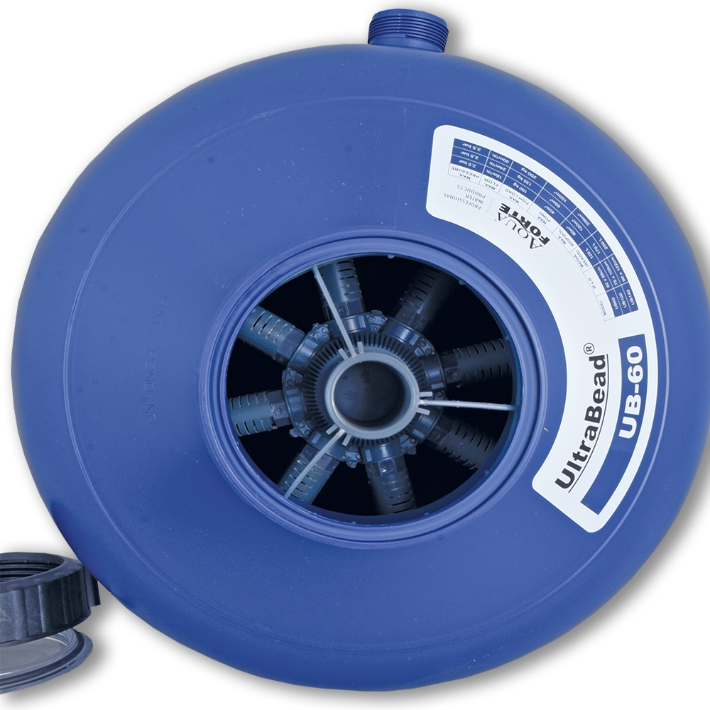 AquaForte stellt den neuen Ultrabead Filter vor! Nach mehr als 17 erfolgreichen Jahren folgt auf Europas beliebtesten Beadfilter nun eine neue Generation. Beadfilter sind geschlossene (Druck-) Filter, die mit ein paar Millionen Plastibeads gefüllt sind. Die Beads sorgen sowohl für die mechanische als auch biologische Filterung. Wenn der Filter länger im Gebrauch ist wird auch der Biofilm um die Beads dicker wodurch auch ganz feine Schmutzpartikel festgehalten werden (bis 10 Mikron!). Sie können für die Auswahl der Pumpe einen Gegendruck von 3 m Wassersäule rechnen. Unsere eigene Verkaufsanlage ist auch mit Beadfiltern bestückt.