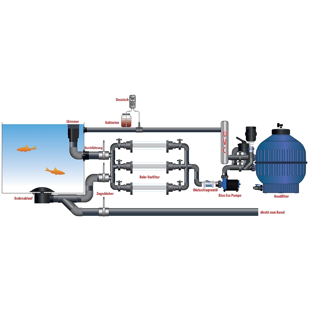 Das UVC-Gerät muss nach dem Filter installiert werden.
