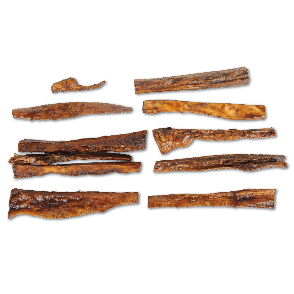 Rinderkopfhaut (99,5%), Maltodextrin (0,3%), Wildlachsöl (0,2%)