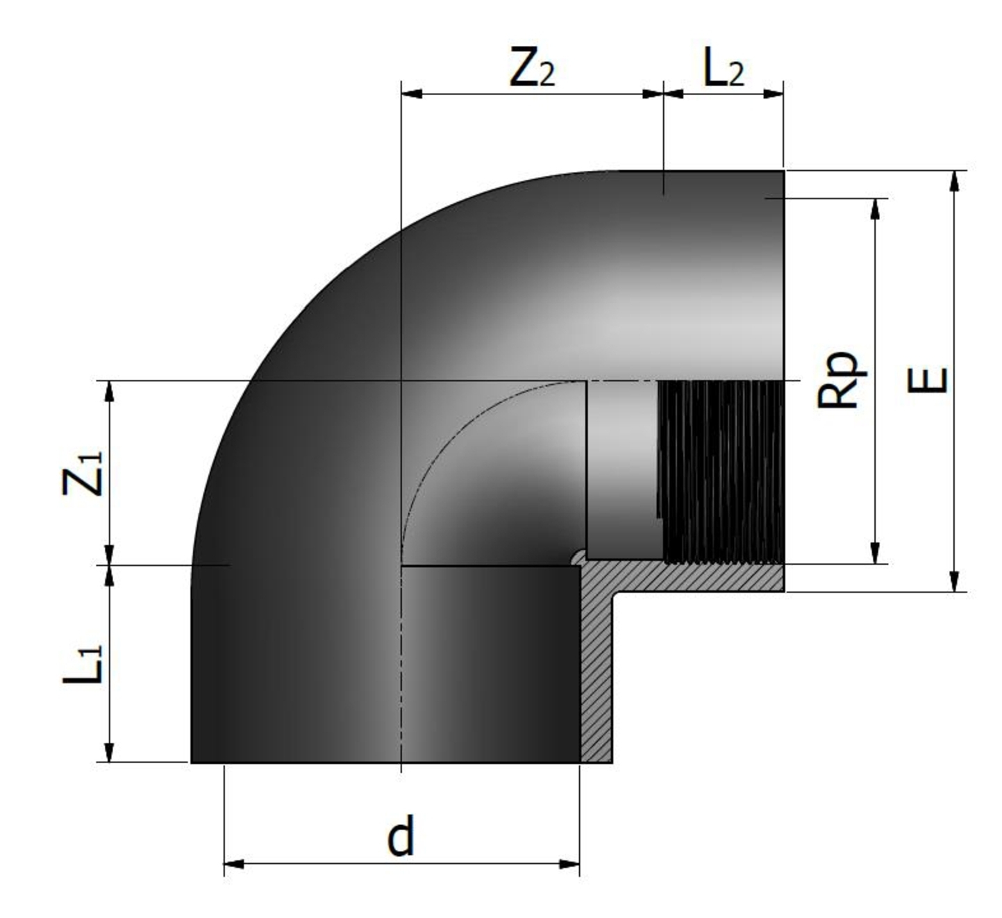 (d) Innendurchmesser (Rp) Innendurchmesser Gewinde L1 Z1 L2 Z2 E Gewicht