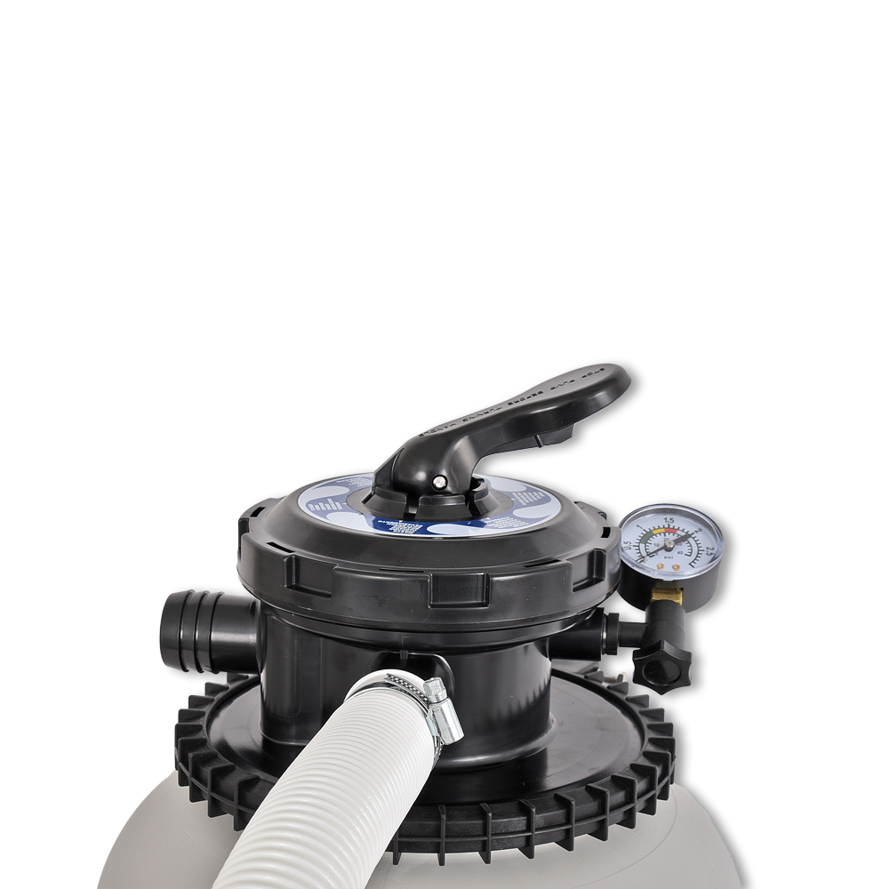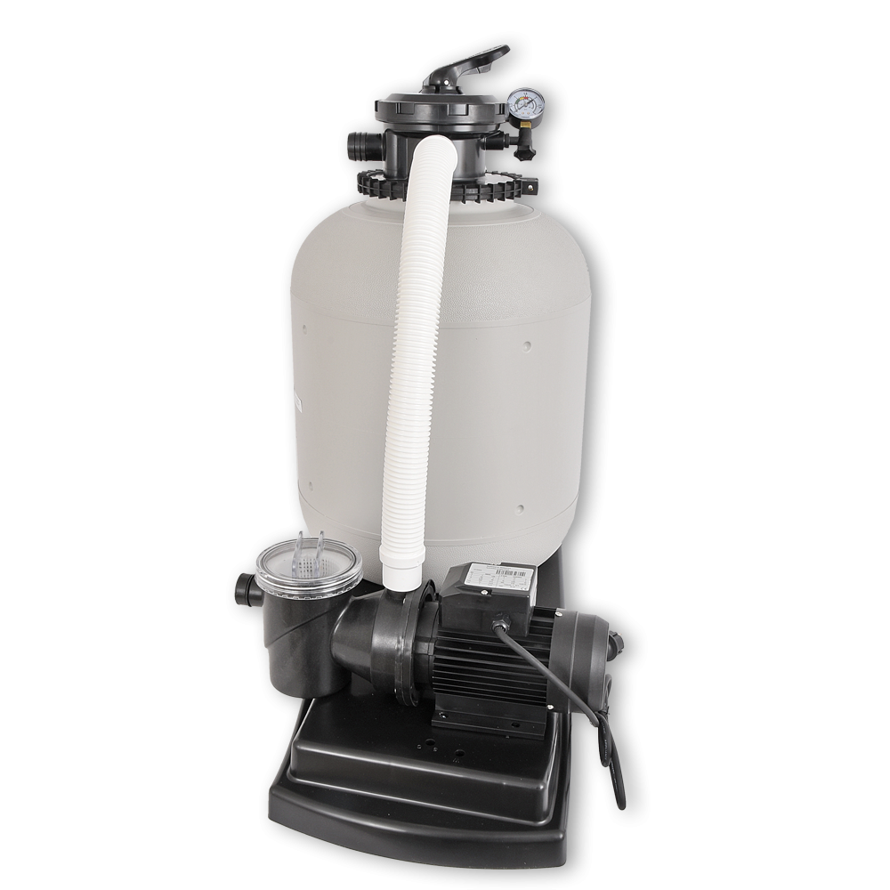 Diese Poolfilterserie besteht aus einem PE Filter, einem 6-Wege Ventil, einer selbstansaugenden Poolpumpe mit Vorfilter sowie Verbindungsschläuche.