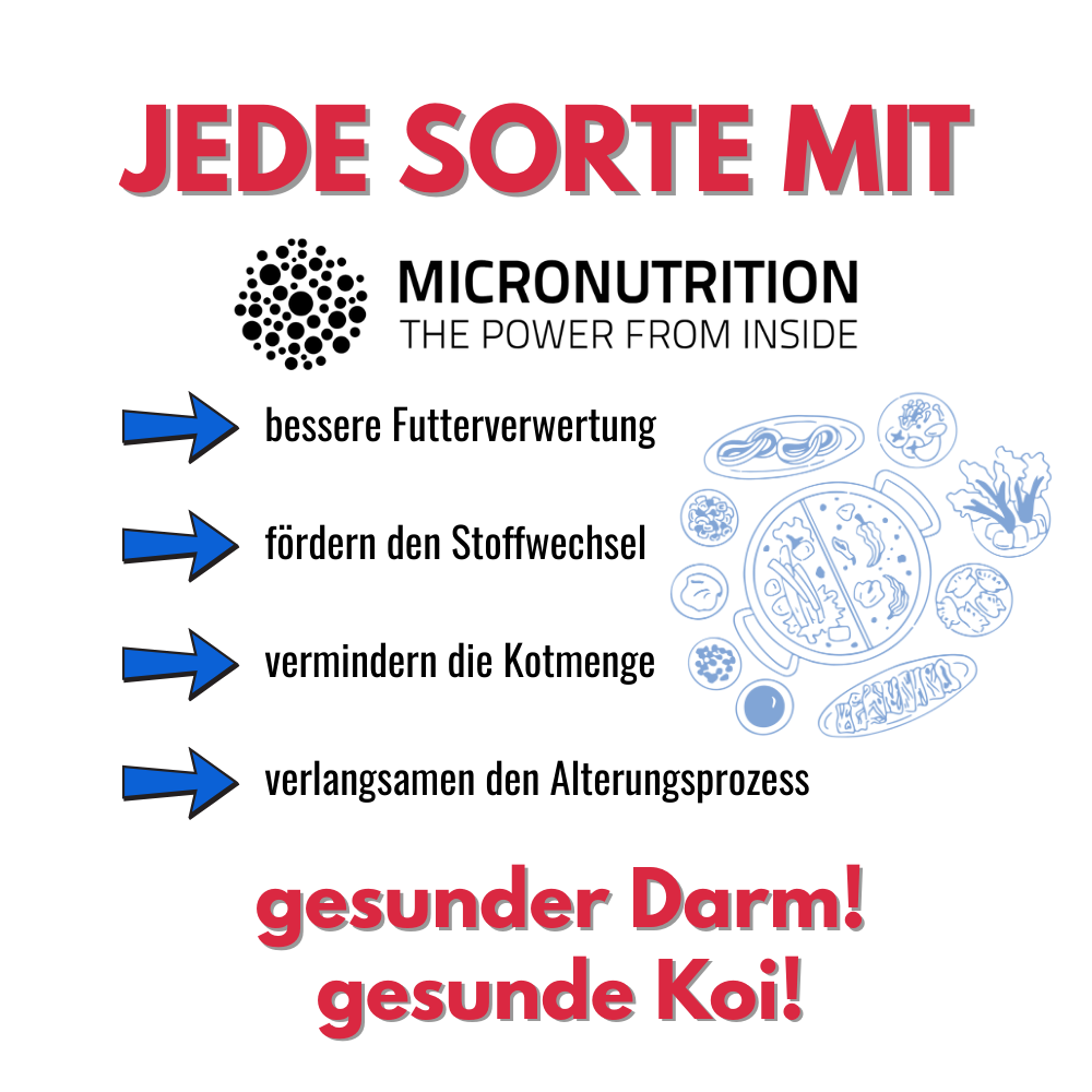 Wenn Sie sich mit dem Hersteller näher auseinandersetzen (Alpha CH 31265) werden Sie zwangsläufig auch auf den exklusiven Mikronährstoffkomplex AQUACULTURE GUARD® stoßen. Dieser Stoff ist in jeder unserer Tri Koi® Futtersorten von Hokovit enthalten, sowie die exklusive Kräutermischung aus dem Kenko® Extra.